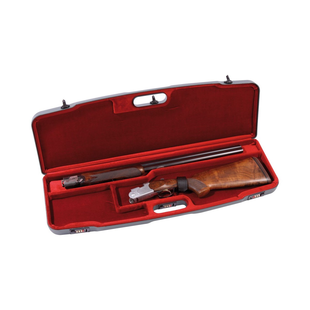 maleta para escopeta de la marca italiana Negrini modelo 1608L. Esta maleta de Negrini tiene unas medidas de 79.5 cm de largo y 23 cm de ancho. Es valida para cañones de hasta 78 Cm. El interior esta forrado en terciopelo para proteger el arma de los golpes y las rozaduras. Viene con 3 cierres metÁlicos con combinacion