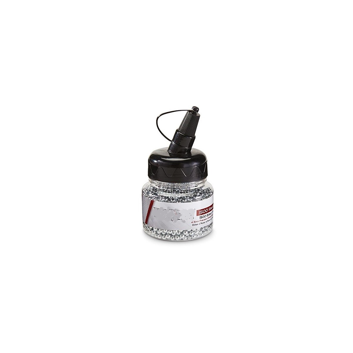CARACTERÍSTICAS: Peso: 0,36 gr. Cantidad: 1500 uds. Munición: Bola acero. Calibre: 4,5 mm