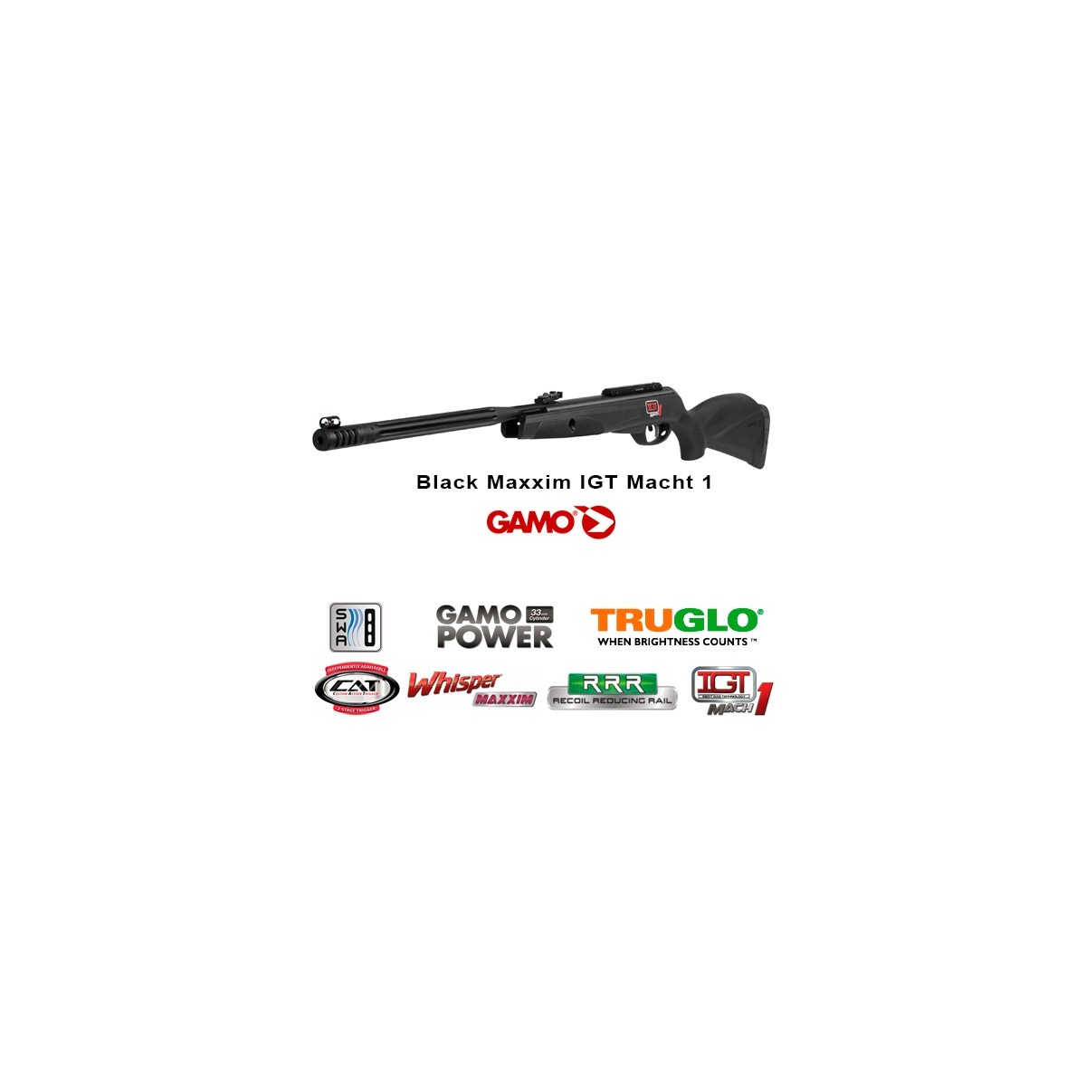 Las carabinas GAMO POWER disponen de una cámara sobredimensionada a 33 mm de diámetro, esta mayor dimensión de cámara junto a la nueva tecnología IGT (INERT GAS TECHNOLOGY), que sustituye al muelle tradicional por un pistón; la confluencia de esas dos tecnologías, GAMO POWER + IGT, es lo que denominamos MACH1. Gracias a estas tecnologías, podemos llegar a una energía de 24 Julios de potencia.