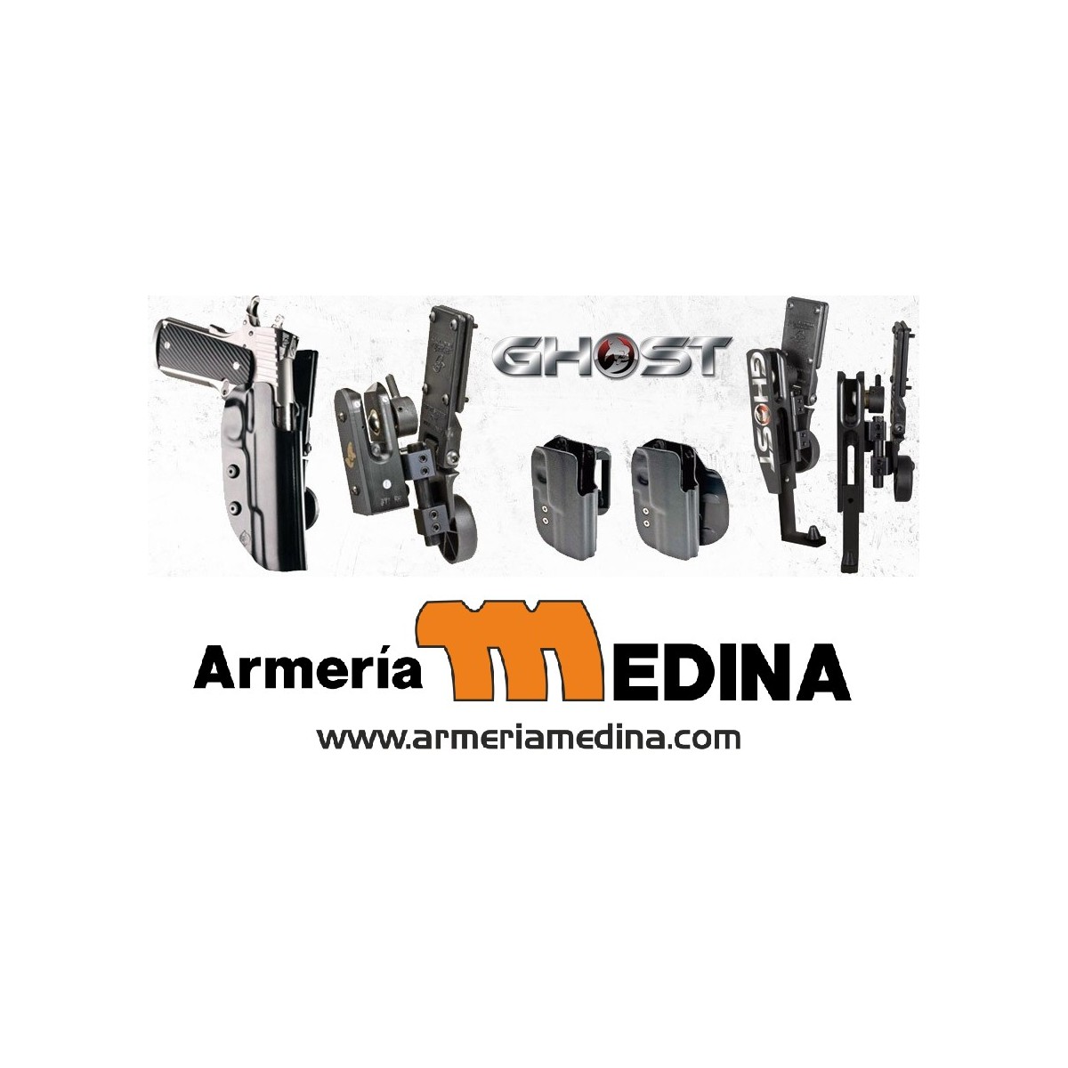 El último diseño, hecho en Italia por los competidores profesionales, ofrece un acceso rápido al arma y a la vez total seguridad cuando está en la funda, pudiendo incluso bloquearla contra golpes o tirones accidentales. Las fundas Ghost no requieren de ninguna modificación en el arma como ocurre con otras fundas.