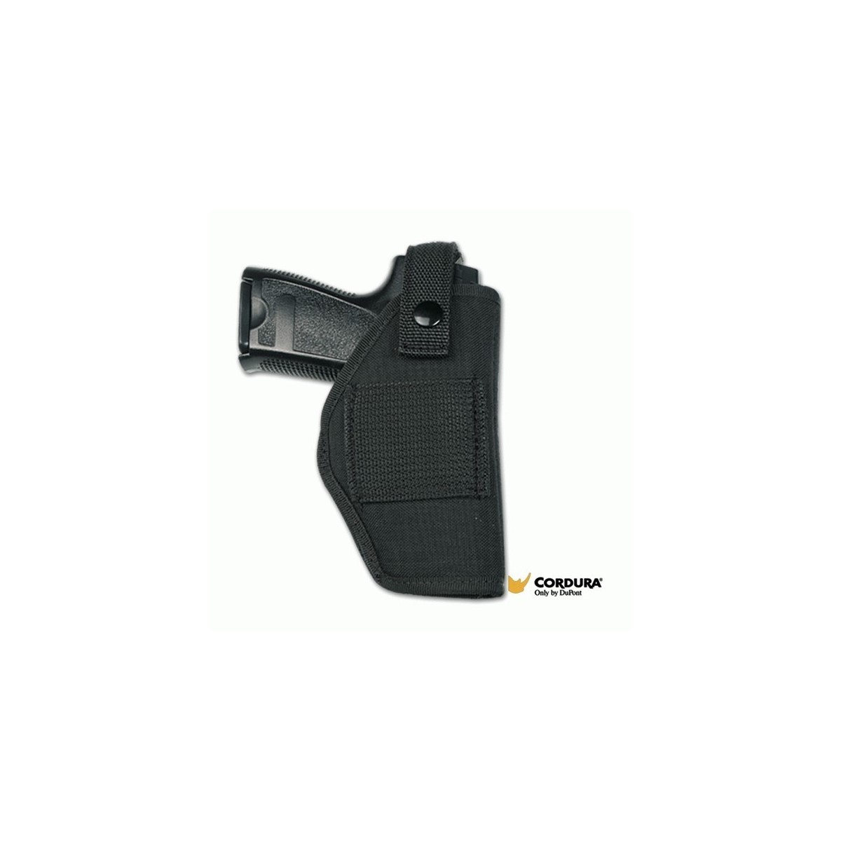 Funda fabricada con material Cordura en color negro.Válida para alojamiento de pistola modelo H&K USP COMPACT y WALTHER P99 COMPACT.Permite posición vertical y horizontal.