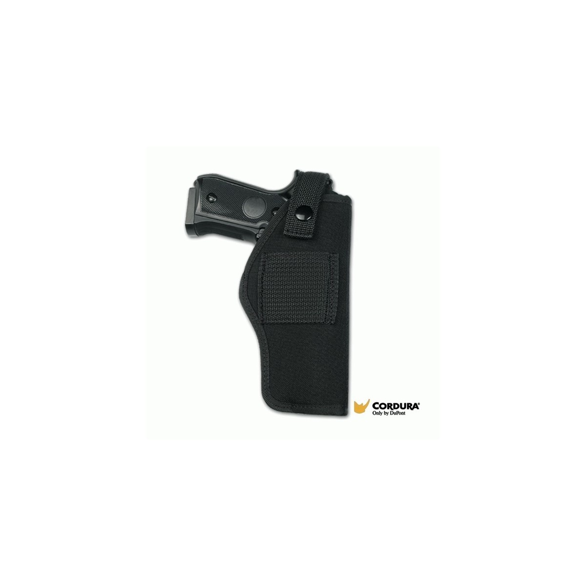 Funda fabricada con material Cordura en color negro.Válida para alojamiento de pistola modelo H&K USP y BERETTA 92FS .Permite posición vertical y horizontal.