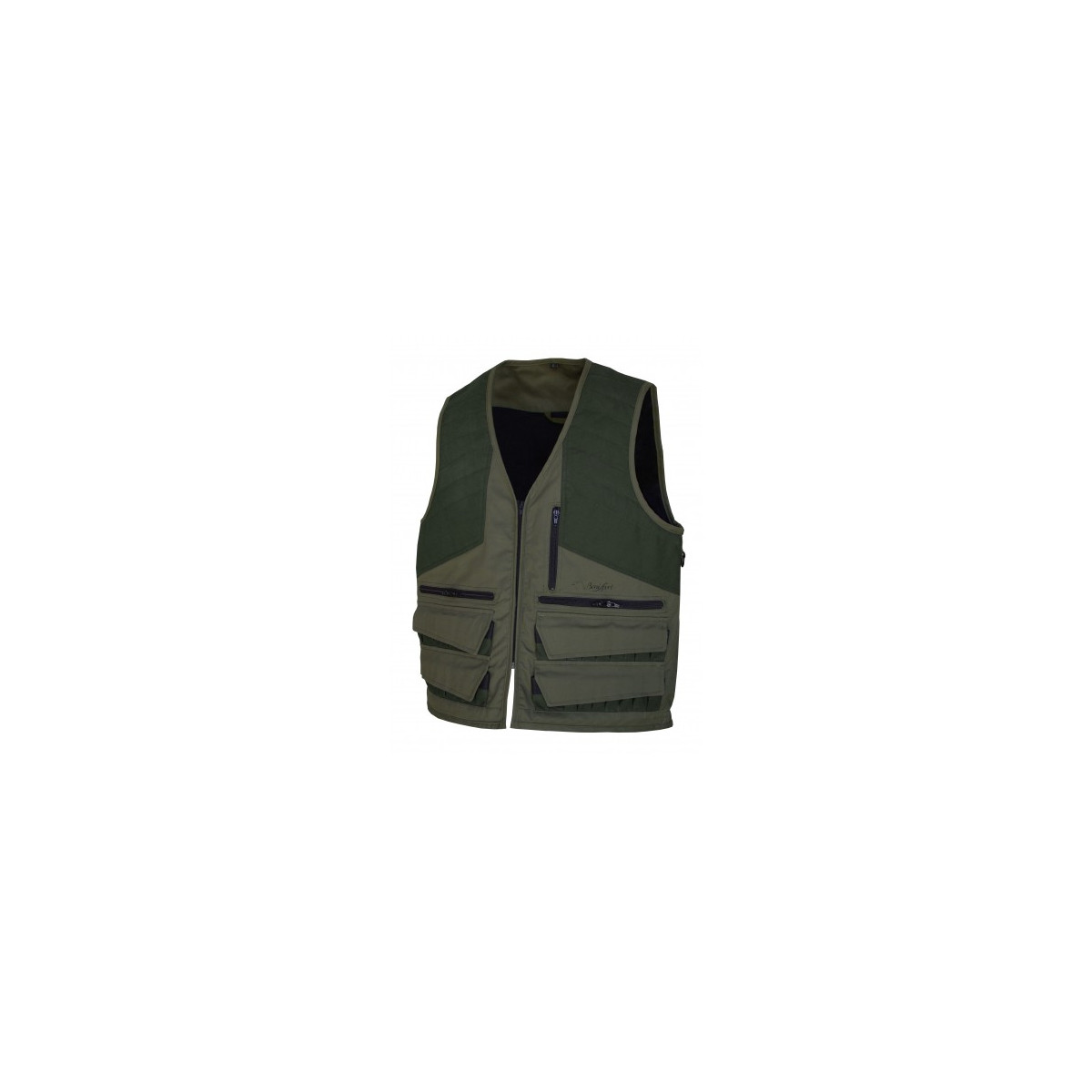 Pequeño bolsillo vertical con cremallera, pensado para albergar la documentacion. Dos bolsillos con cremallera horizontales de gran capacidad. Doble cartuchera con solapa de cierre. Capacidad para 27 cartuchos. Cartuchera con terminacion elastica para facilitar la colocacion de los cartuchos. Banda elastica interior para ajustar el chaleco a la cintura. Morral trasero de gran capacidad.