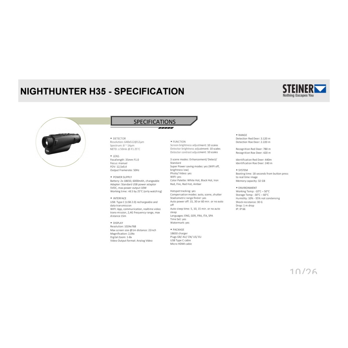 STEINER NIGHTHUNTER H35 - MONOCULAR DE VISIÓN TÉRMICA
