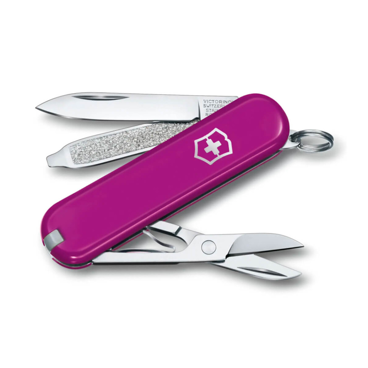 La navaja de bolsillo Victorinox Classic SD Tasty grape es un icono de elegancia y funcionalidad. Gracias a su tamaño, se convertirá en la herramienta estrella de tu bolsillo. Práctica, sencilla y fácil de usar.