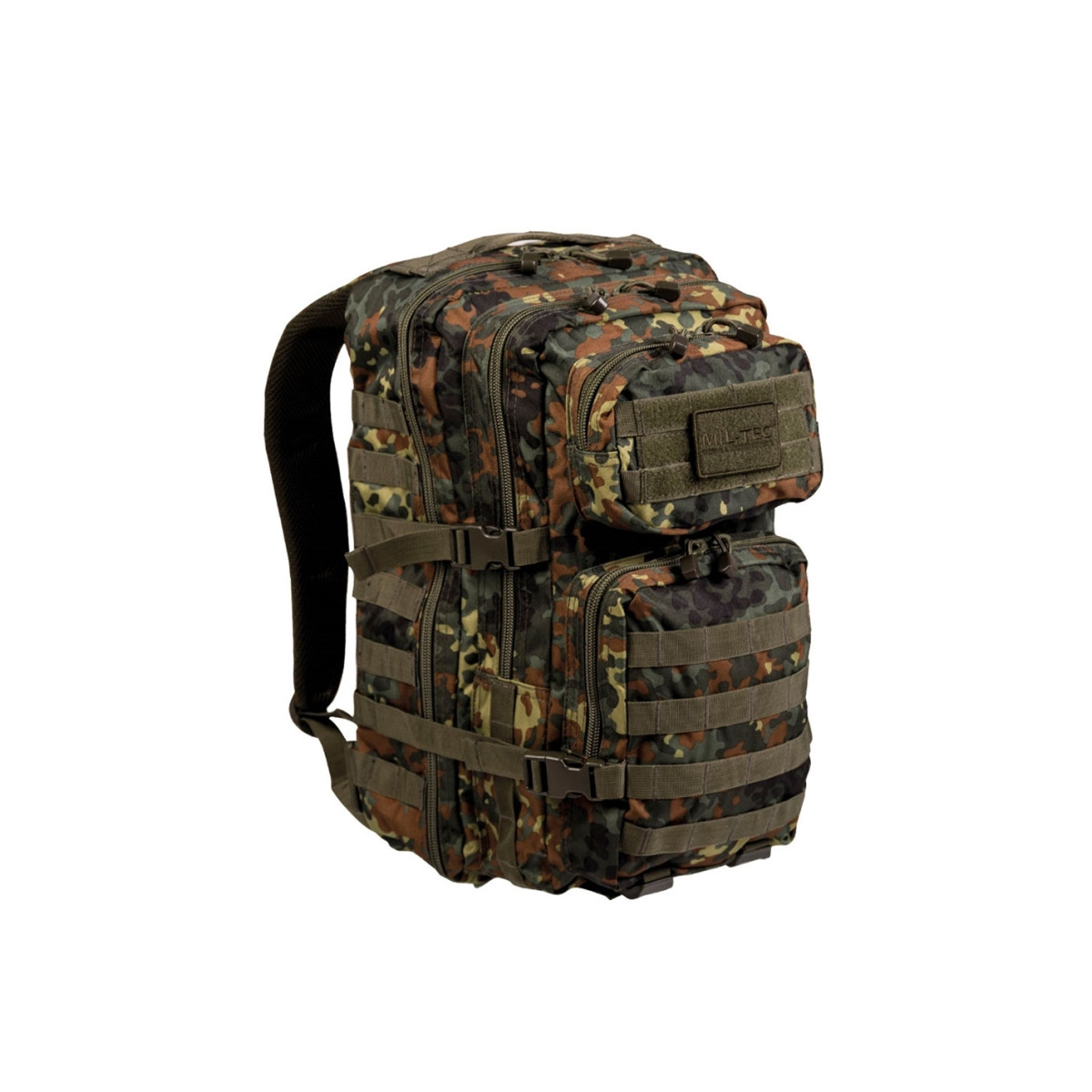 La mochila táctica de asalto militar en camuflaje Flecktarn de MilTec con sistema MOLLE para poder acoplar todo tipo de equipamiento con este sistema. Es una práctica mochila tanto para el uso diario como para realizar cualquier actividad al aire libre: airsoft, camping, caza, pesca o senderismo.