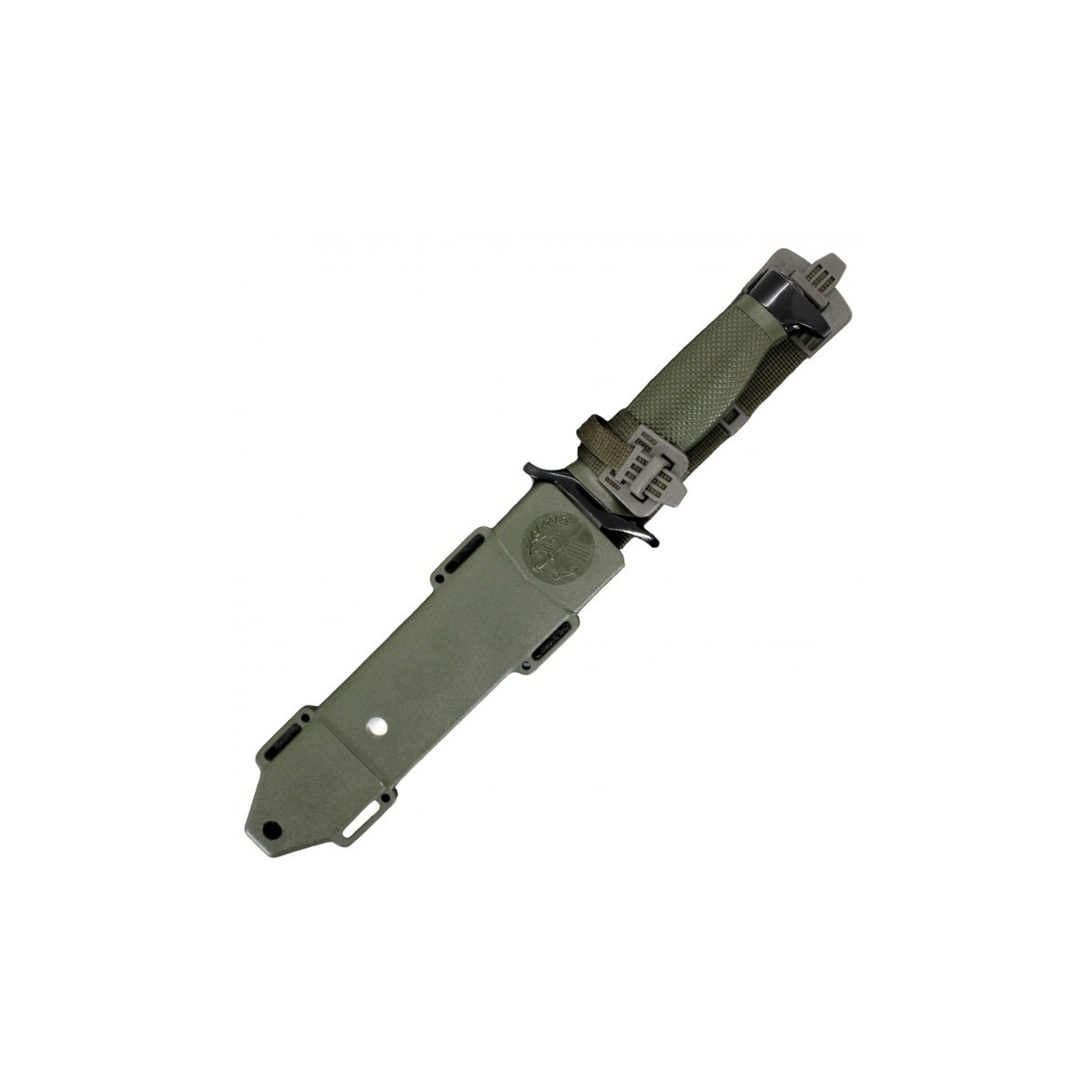 Mango: Ergonómico de Poliamida verde antideslizante, defensa y pomo color negro
