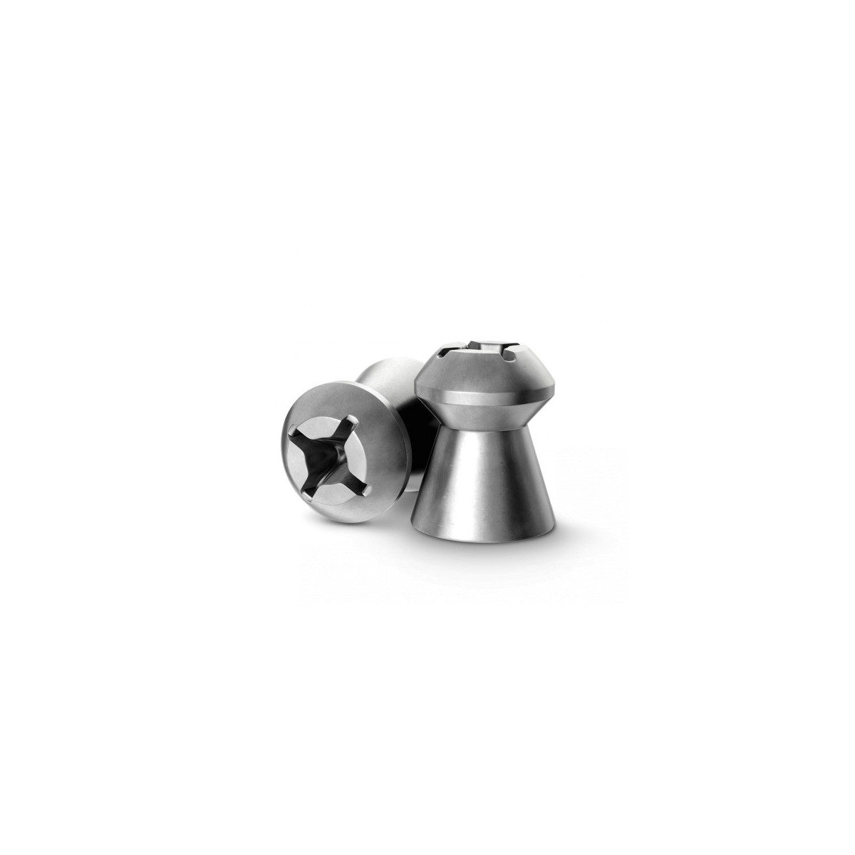 Balín pesado, de alta precisión para distancias largas. Diseño aerodinámico magnífico para un alto poder de perforación y profundidad. Agrupaciones muy pequeñas. Emplomado muy bajo y patrones de tiro homogéneos gracias a la aleación especial y engrase. Seleccionado especialmente. (200 Unidades)