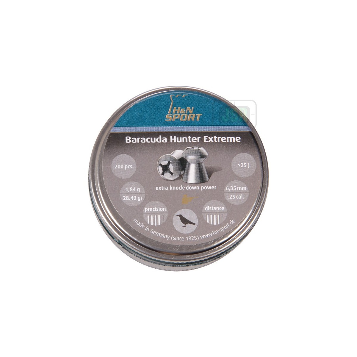 Balín pesado, de alta precisión para distancias largas. Diseño aerodinámico magnífico para un alto poder de perforación y profundidad. Agrupaciones muy pequeñas. Emplomado muy bajo y patrones de tiro homogéneos gracias a la aleación especial y engrase. Seleccionado especialmente. (200 Unidades)